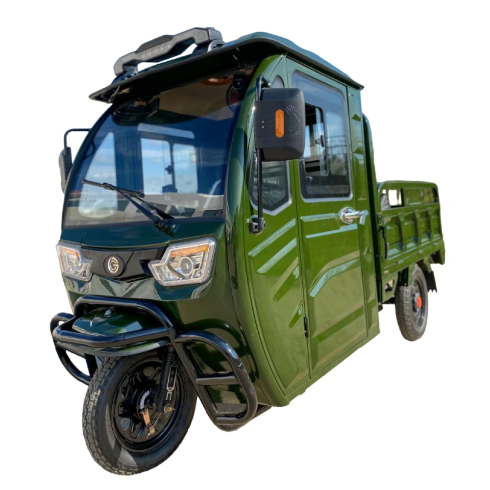 Электротрицикл грузовой GreenCamel Тендер D1500 (60V 1000W) кабина, понижающая темно-зеленый