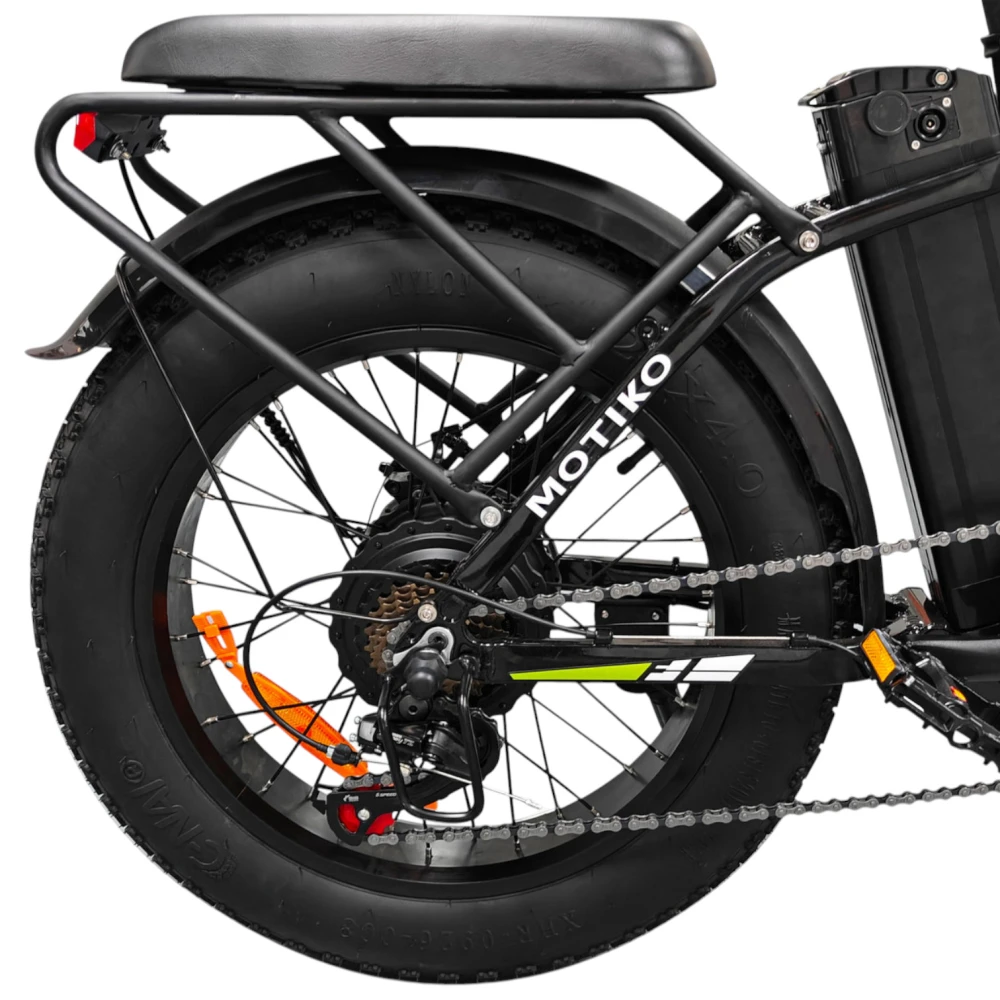 Электровелосипед Motiko MF1 — это мощный фэтбайк с задним мотор-колесом, разработанный для городских поездок, поездок на дачу и езды по лёгкому бездорожью. Он сочетает высокую проходимость, комфортную амортизацию и длительный запас хода, что делает его универсальным выбором для повседневного использования.